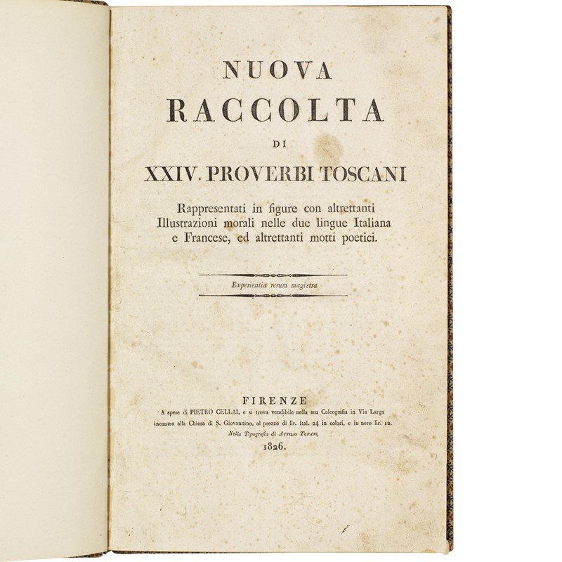 (Toscana - Illustrati 800) Nuova raccolta di XXIV proverbi toscani. Firenze, a spese di Pietro Cellai nella Tipografia di Attilio Tofani, 1826.