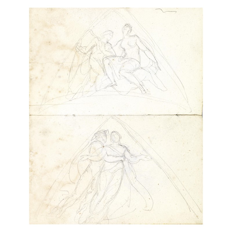 Artista neoclassico, inizio sec. XIX TACCUINO CON STUDI DI FIGURA E DAGLI AFFRESCHI DI ANDREA APPIANI NELLA ROTONDA DI VILLA REALE (MONZA) 48 carte con disegni a matita e a penna e inchiostro su carta vergellata e filigranata, rilegate in cartone rivestito in carta marmorizzata, mm 180x115 (ciascuna carta)