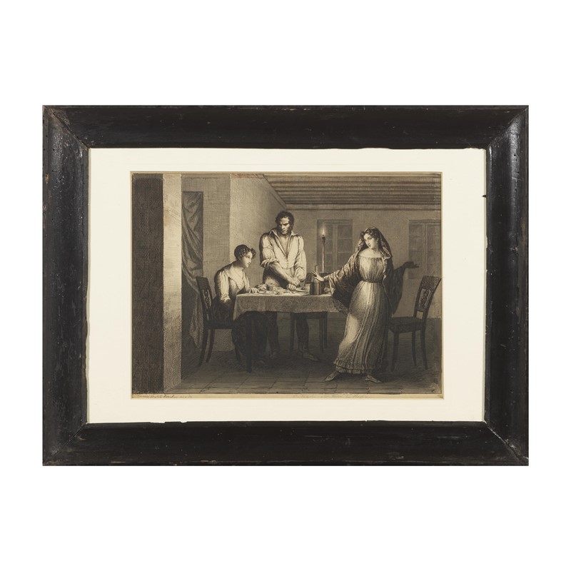 Giovanni Busato (Vicenza, 1806-1886) SCENE DI INTERNO IN NOTTURNO coppia di disegni, penna e inchiostro su carta, mm 215x290; 220x295 firmati in basso a sinistra "Giovanni Busati di Vicenza inc. e dis."