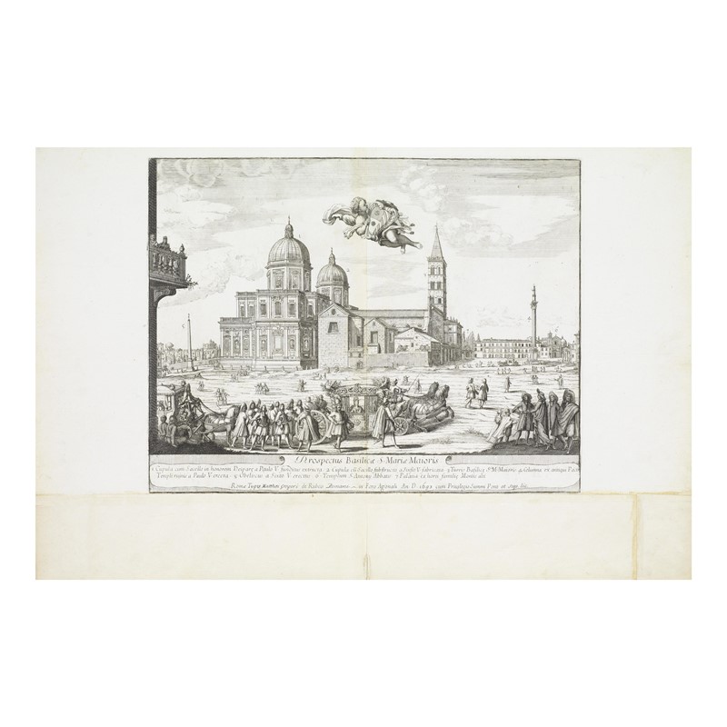 PROSPECTUS BASILICAE S. MARIAE MAIORIS etching on watermarked laid paper, mm 379x488 (plate) edited in 1693 by Matteo Gregorio De Rossi