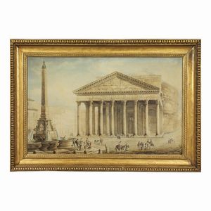 Franz Kaisermann (Yverdon, 1765 – Roma, 1833) VISTA DEL PANTHEON penna e inchiostro, pennello e acquarello [..]