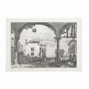 Antonio Canal, detto Canaletto (Venezia, 1697 - 1768) IL PORTICO CON LA LANTERNA acquaforte, carta vergellata [..]