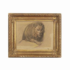 Artista del sec. XIX LEONE carbincino e pastello su carta, mm 195x250 Artist of 19th century A LION charcoal [..]