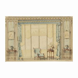 LOTTO DI 5 STUDI DI ARREDI E INTERNI cinque disegni, matita e acquarello su carta, varie misure (5) LOT OF [..]
