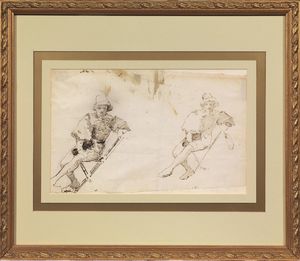 Pietro Fragiacomo (Trieste 1856 - Venezia 1922) STUDI DI FIGURE acquerello, china e matita grassa su carta, cm [..]