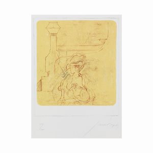 Scuola del sec. XX GENTILDONNA CON CAPPELLO DI PROFILO E GENTILUOMO litografia, mm 360x330 School of 20th century [..]