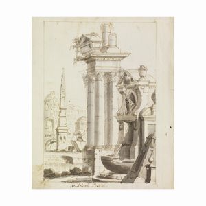 Giovanni Antonio Bettini (1700 - 1773) CAPRICCIO ARCHITETTONICO matita nera, penna e inchiostro, pennello e inchiostro [..]