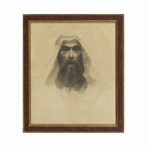 Artista del sec. XIX RITRATTO DI ARABO matita nera su carta, mm 360x300 Artist of 19th century PORTRAIT OF [..]
