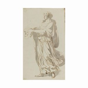 Scuola italiana, sec. XIX GIUDITTA matita rossa, penna e inchiostro, pennello e inchiostro acquarellato grigio, [..]