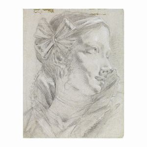Cesare Ligari (Milano, 1716 – Como, 1770) RITRATTO DI GENTILDONNA matita nera e gesso bianco, carta cerulea, [..]