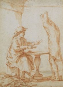 Giuseppe Maria Mitelli (Bologna, 1634 – 1718) CHI GIOCA PER SOLDI PERDE PER NECESSITA' matita rossa su carta, [..]