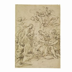 Pompeo Ghitti (Marone, 1631 - 1703) SAN LUCA RITRAE LA MADONNA COL BAMBINO penna e inchiostro, carta vergellata [..]