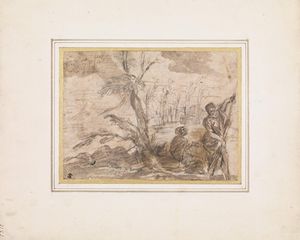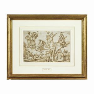 Scuola napoletana, sec. XVIII RIPOSO DALLA FUGA IN EGITTO matita nera, penna e inchiostro, pennello e inchiostro [..]