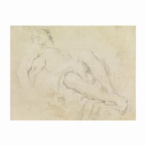 Scuola emiliana, fine sec. XVII / inizio sec. XVIII STUDIO PER FIGURA MASCHILE ADDORMENTATA matita nera e gesso [..]