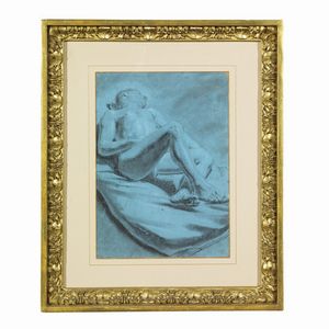 Scuola francese, sec. XVIII STUDIO DI NUDO matita nera e gesso bianco su carta preparata, mm 315x235 French [..]