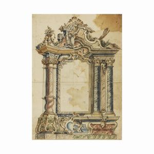 Scuola italiana, sec. XVIII PROGETTI PER ALTARI due disegni, matita nera, penna e inchiostro, pennello e inchiostri [..]