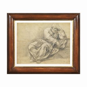 Scuola italiana, sec. XIX GIUDITTA matita rossa, penna e inchiostro, pennello e inchiostro acquarellato grigio, [..]