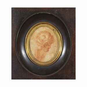 Scuola romana, sec. XVII STUDI DI VOLTI coppia di disegni di formato ovale, matita rossa, carta vergellata, mm [..]