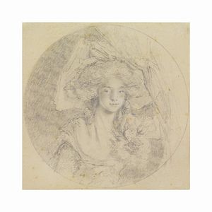 Scuola francese, inizio sec. XIX RITRATTO FEMMINILE matita nera su carta, mm 110x110 French school, early 19th [..]