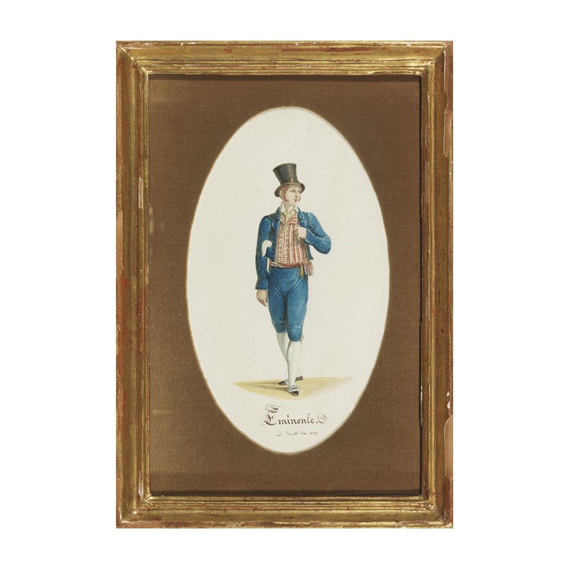 Salvatore Busuttil (Gozo, 1798 - 1854) FIGURE IN COSTUME due acquarelli firmati "Salvatore Busuttil 1829" e due acquarelli uno raffigurante figura femminile e uno con saltarello romano, varie misure (4)