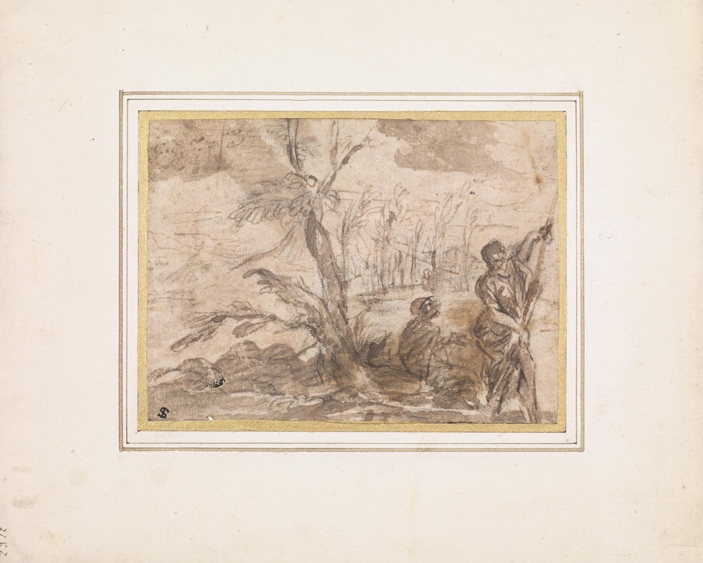 TWO FIGURES IN A LACUSTRINE LANDSCAPE