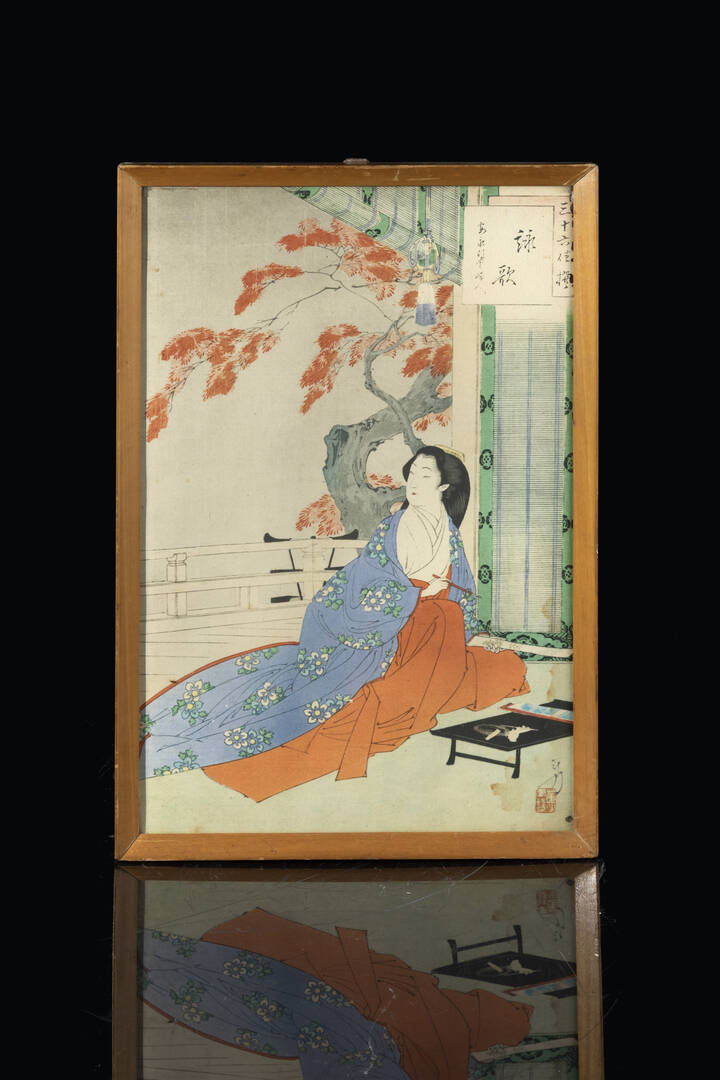 Dipinto raffigurante donna Giappone XX secolo. h cm 31x21