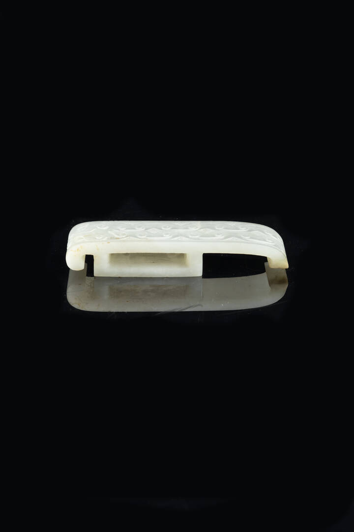 Fibbia in giada bianca con decori arcaici