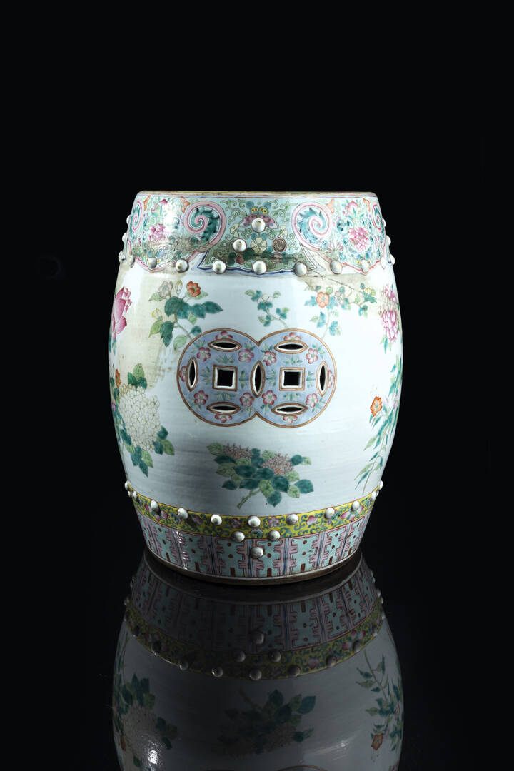 Garden sit in porcellana Famiglia Rosa con decori floreali Cina XIX secolo. h cm 48x30