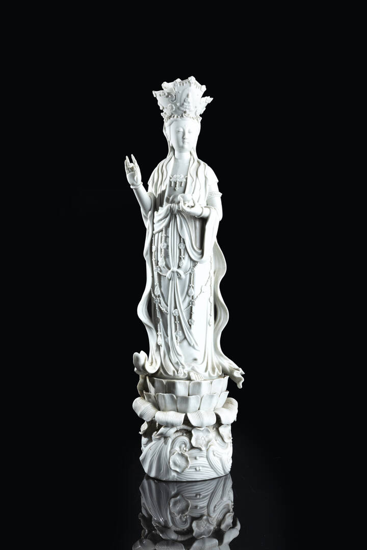Guanyin in porcellana Blanc de Chine Cina Repubblica XX secolo. h cm 59x15