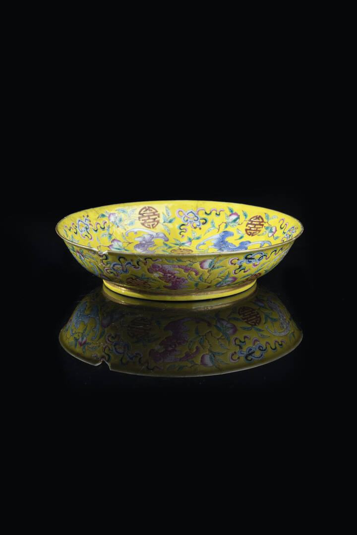 Piatto in porcellana Famiglia Rosa su sfondo giallo Cina dinastia Qing XIX secolo [..]