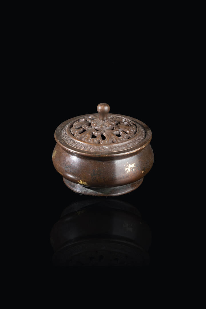 Piccolo censer con segni di lumeggiatura dorata e coperchio Cina dinastia Qing XIX secolo. h cm 8x10