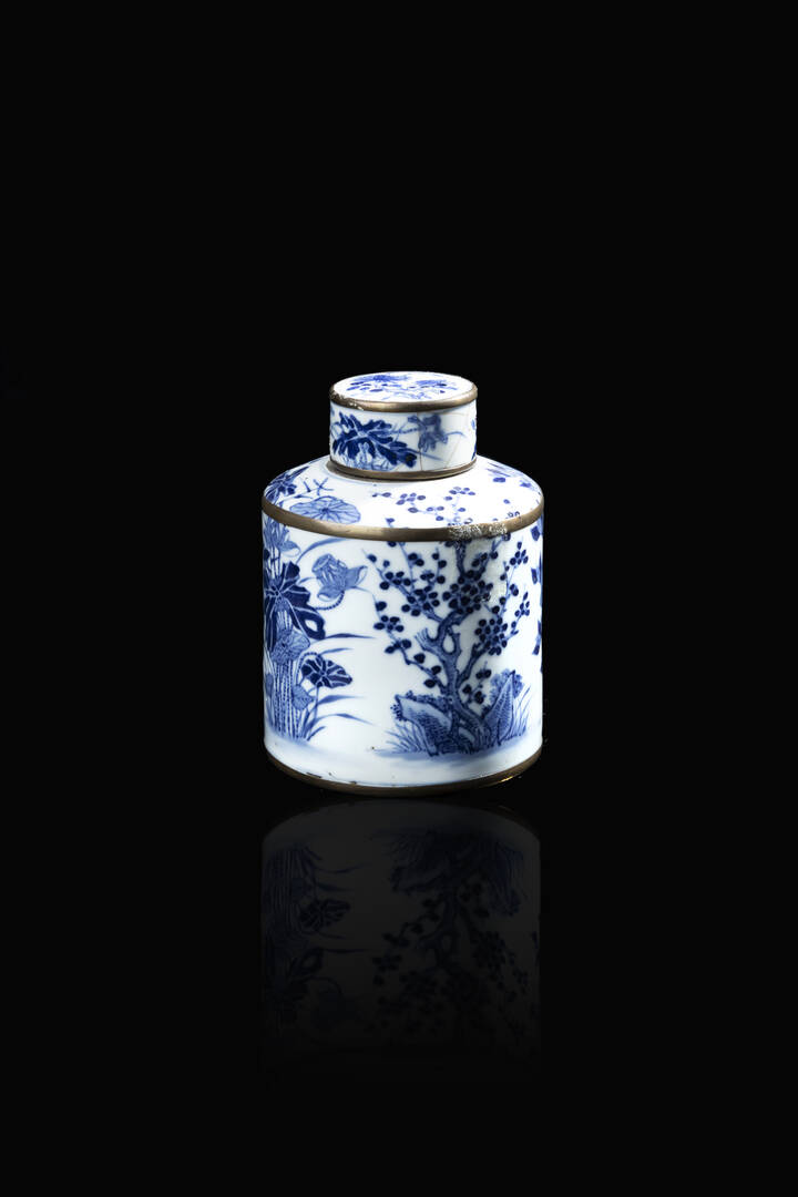 Porta tè tondo in porcellana bianca e blu Cina dinastia Qing XIX secolo. h cm [..]