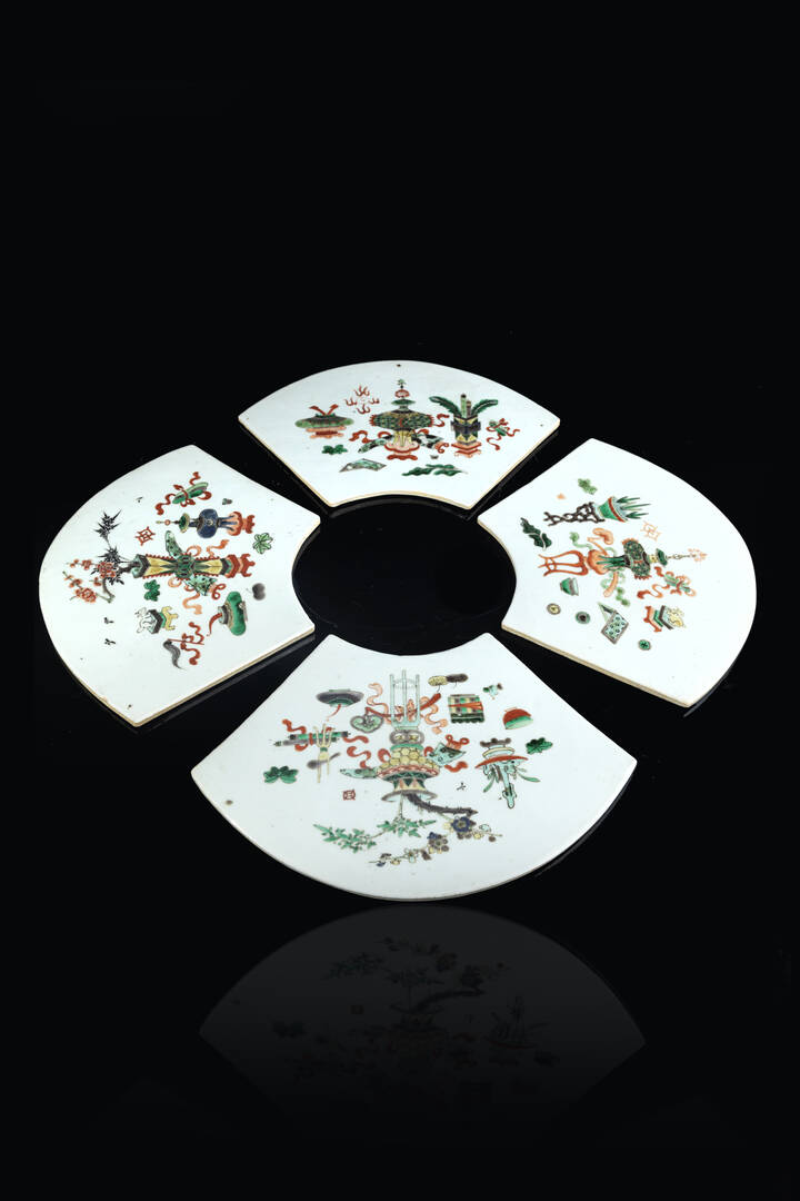 Quattro placche in porcellana Famiglia Verde Cina dinastia Qing XX secolo. h cm 20x28