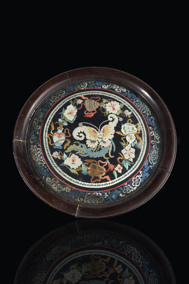 Ricamo su seta entro cornice Cina Repubblica XX secolo. diam. cm 34