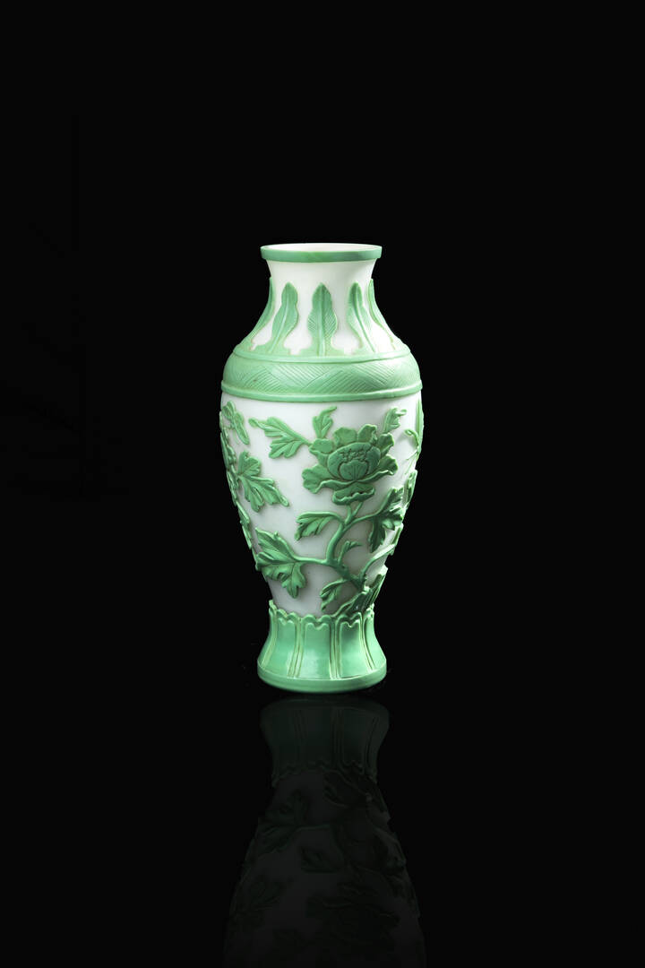 Vaso in vetro di Pechino nei colori del verde con decori floreali Cina XX secolo. [..]