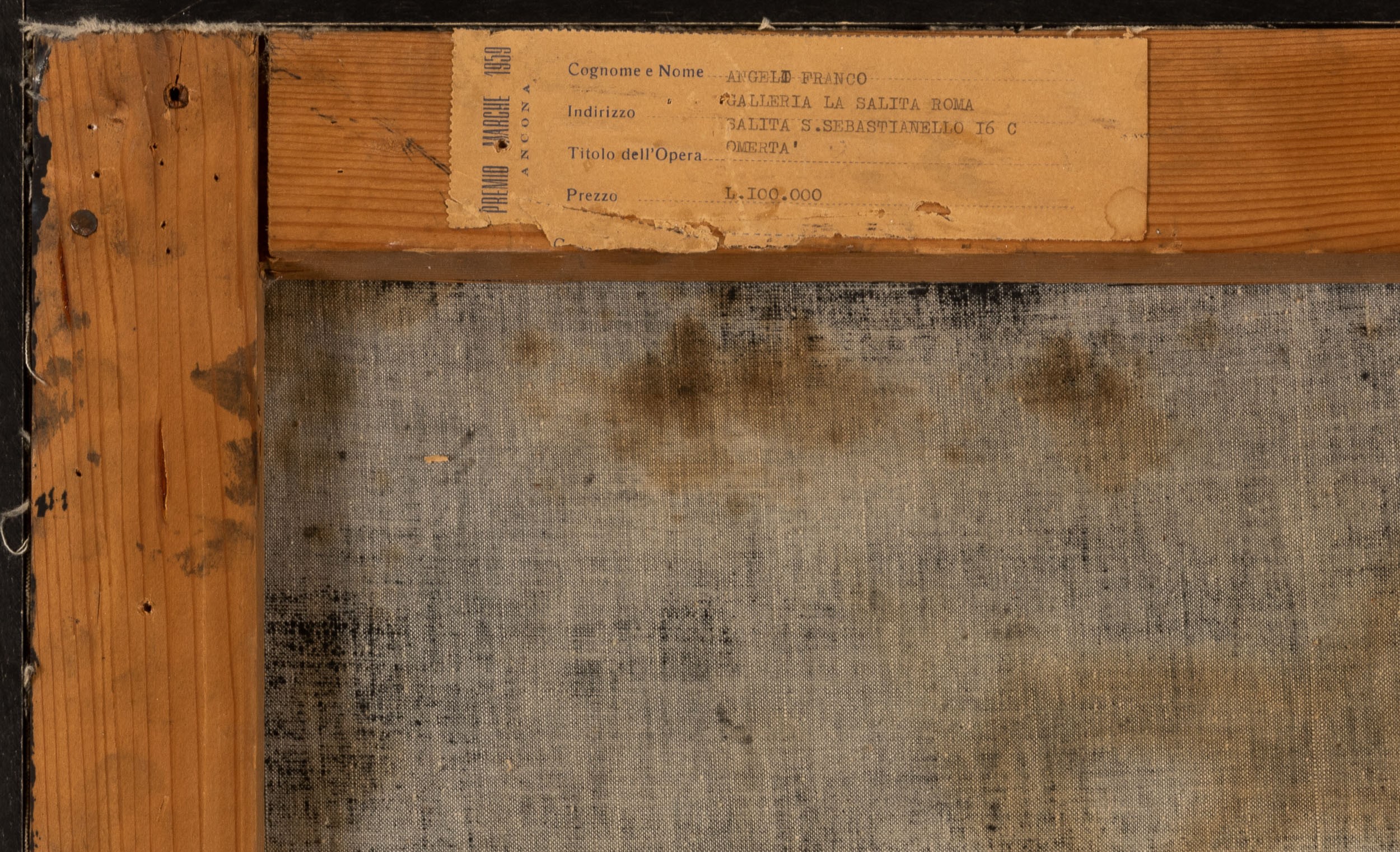Etichetta al retro del Premio Marche, Ancona, 1959