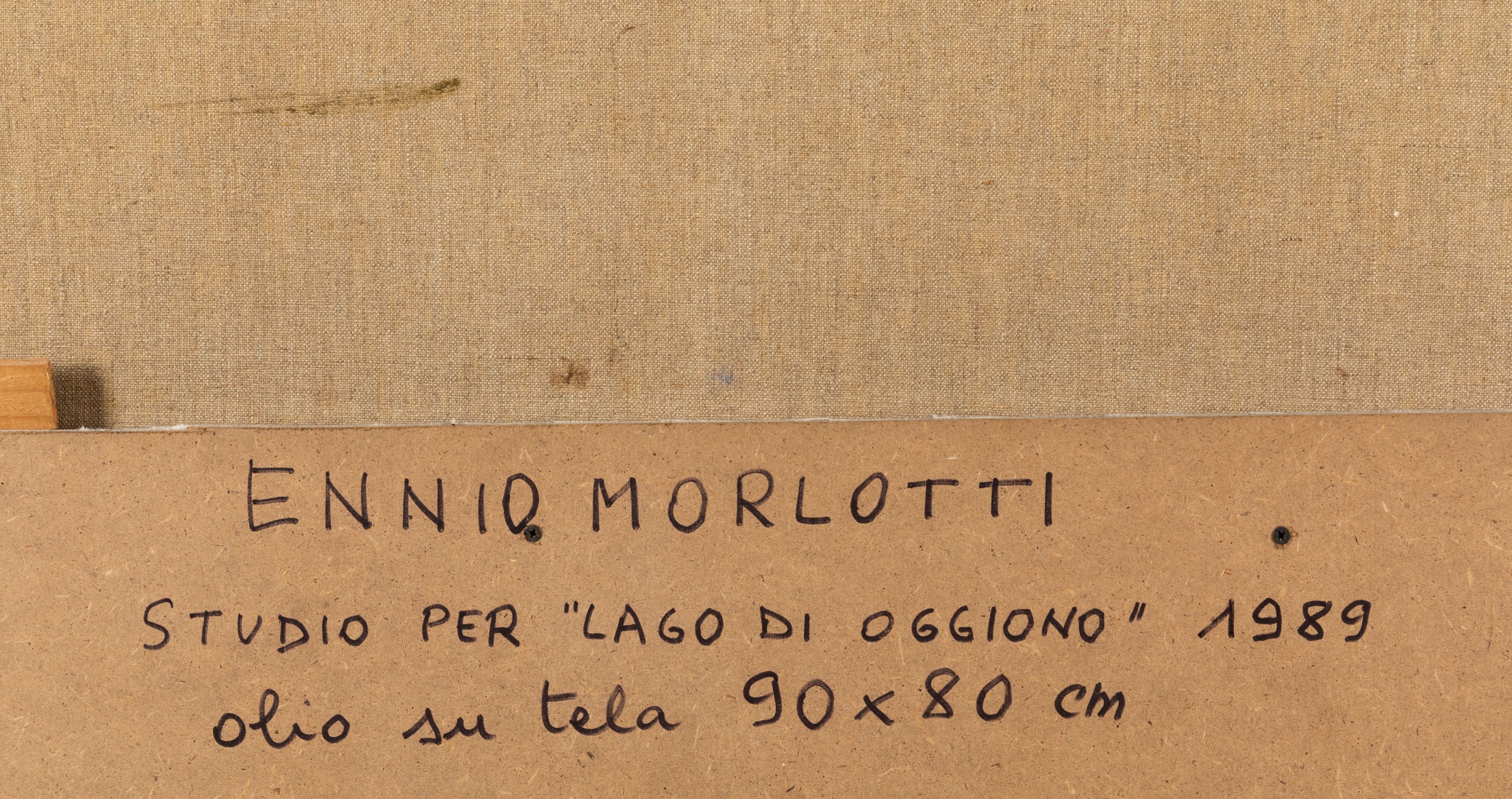 Etichetta al retro dell'esposizione Morlotti Chighine Della Torre Maffi. Luce e materia nei pittori dell'Adda