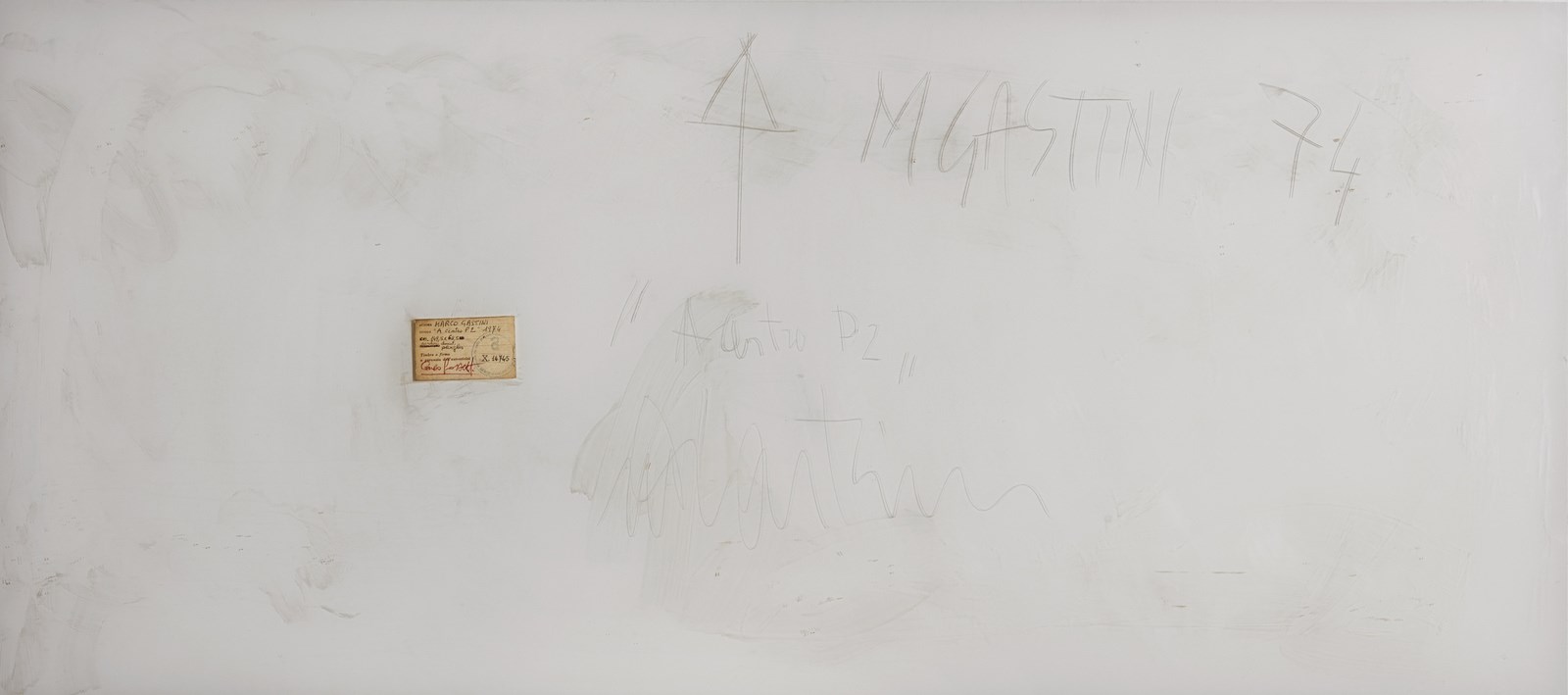 Al retro titolo, firma, anno e cartiglio descrittivo con firma Carlo Grossetti. Provenienza: Collezione Lana, Milano. Ringraziamo l'Archivio Marco Gastini, Milano, per aver confermato la presenza dell'opera nei loro archivi.