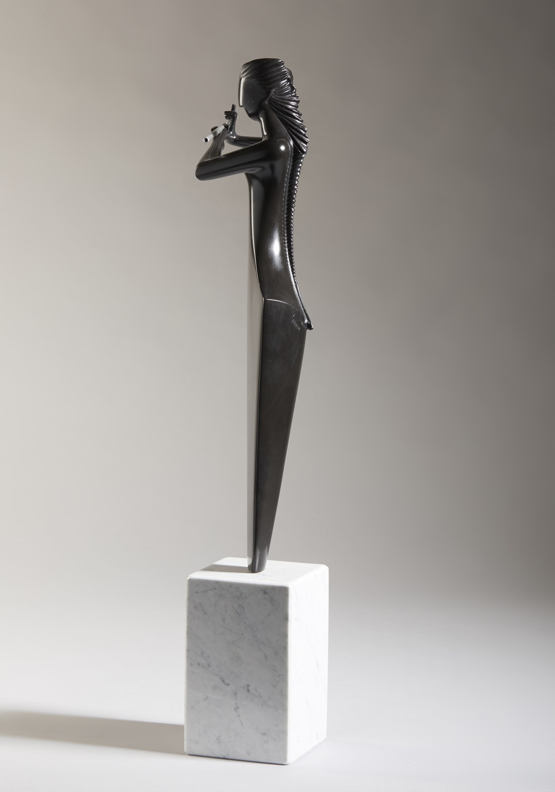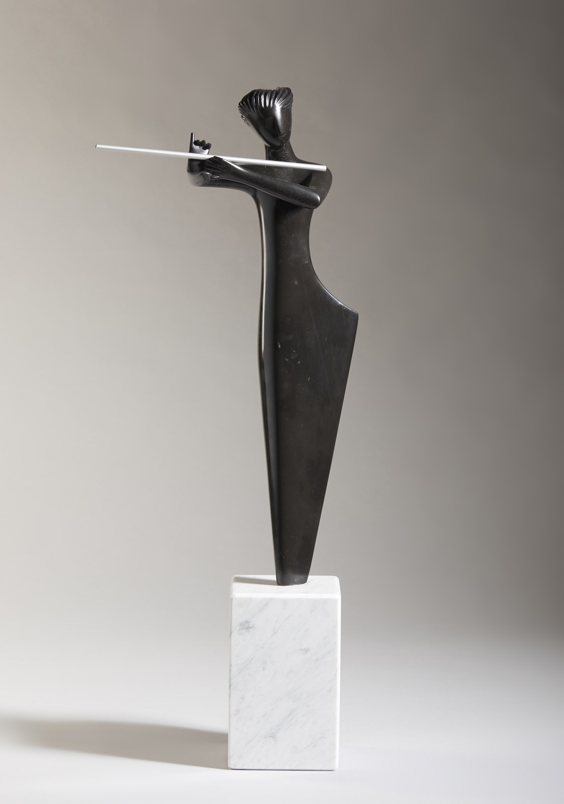 Scultura in marmo nero del Belgio con base in marmo di Carrara. Firma e anno incisi al retro. Dimensioni della base: 19x11,7x11,7 cm. Autentica dell'artista su fotografia.