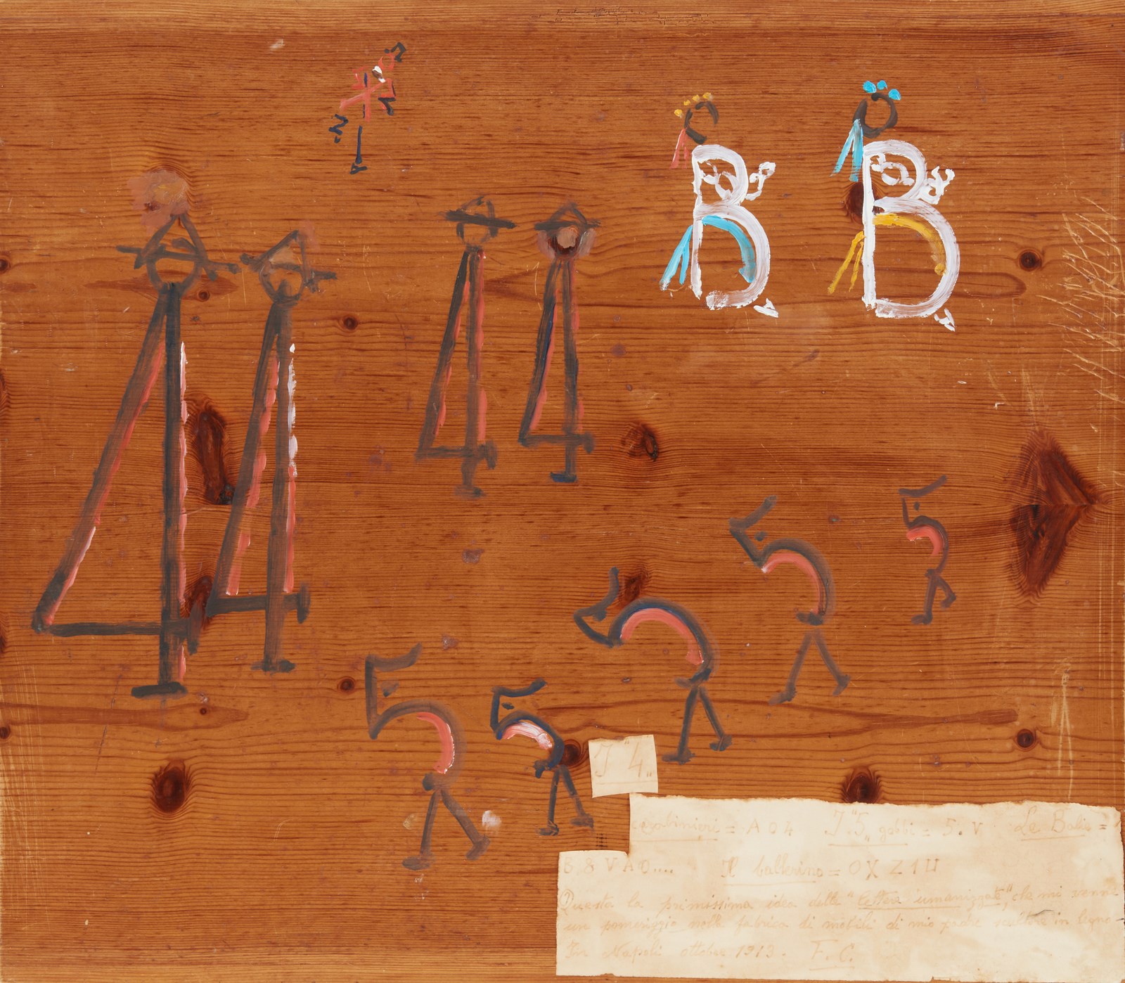 Firma, titolo e anno presenti sul cartiglio in basso a destra. Al retro cartiglio descrittivo Museo Civico, Torino- timbri del Museo Diego Aragona Pignatelli, Napoli e cartiglio De Marinis Spedizioni internazionali. Pubblicazione: In Margine. Artisti napoletani tra tradizione e opposizione 1909-1923 a cura di Mariantonietta Picone, Fabbri editori, 169- Tavole parolibere futuriste (1912-1944) - parte seconda, a cura di Luciano Caruso e Stelio Maria Martini, Liguori Editore, 1977, pag. 85- Francesco Cangiullo, Galleria Martano, Torino, a cura di Luciano Caruso, Dicembre 1979 - Gennaio 1980. Provenienza: Collezione Joimo, Livorno- Collezione privata, Livorno. Esposizione: Futurismo e Meridione, Palazzo Reale, Napoli, 19 Giugno -30 Settembre 1996. Difetti.