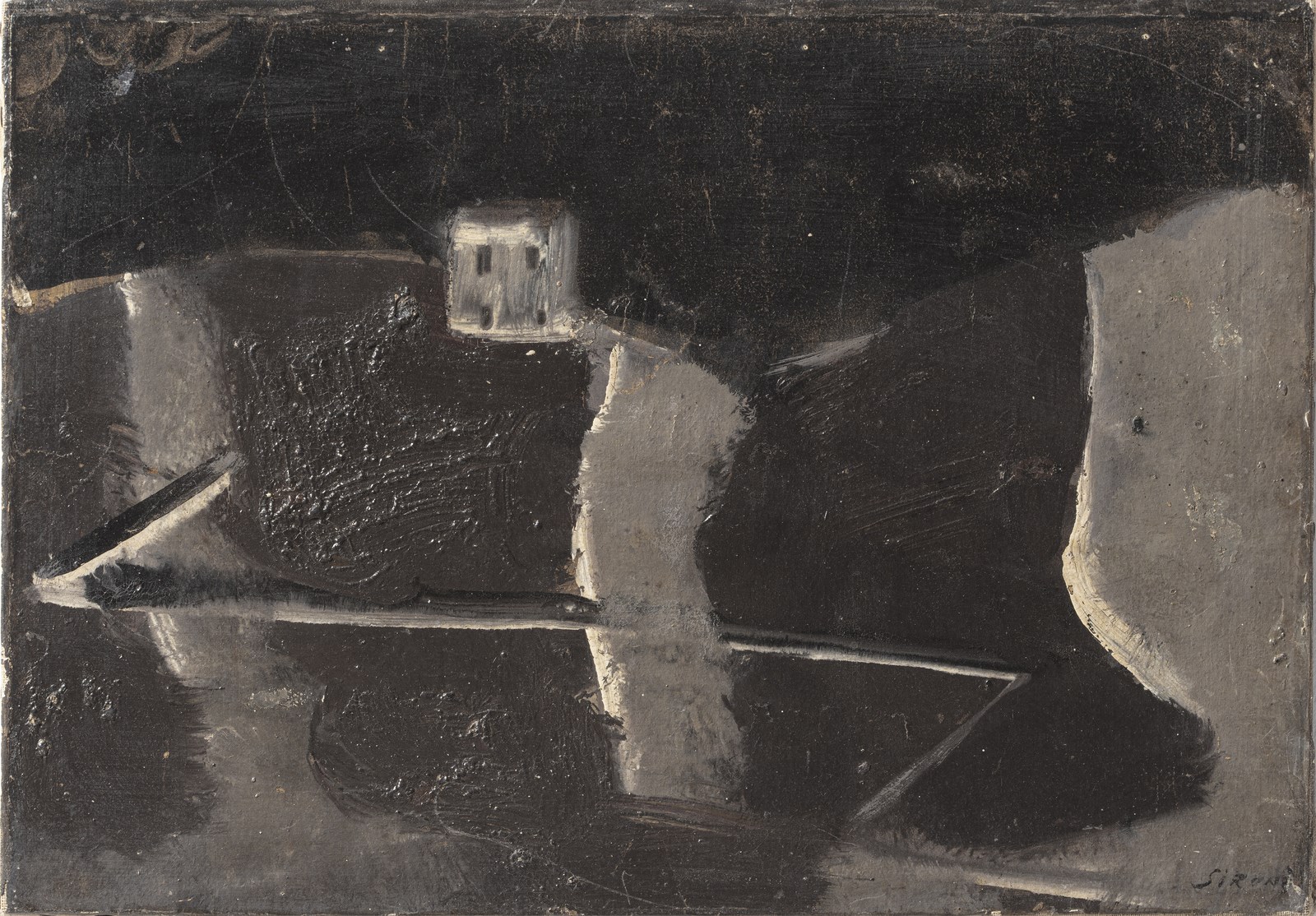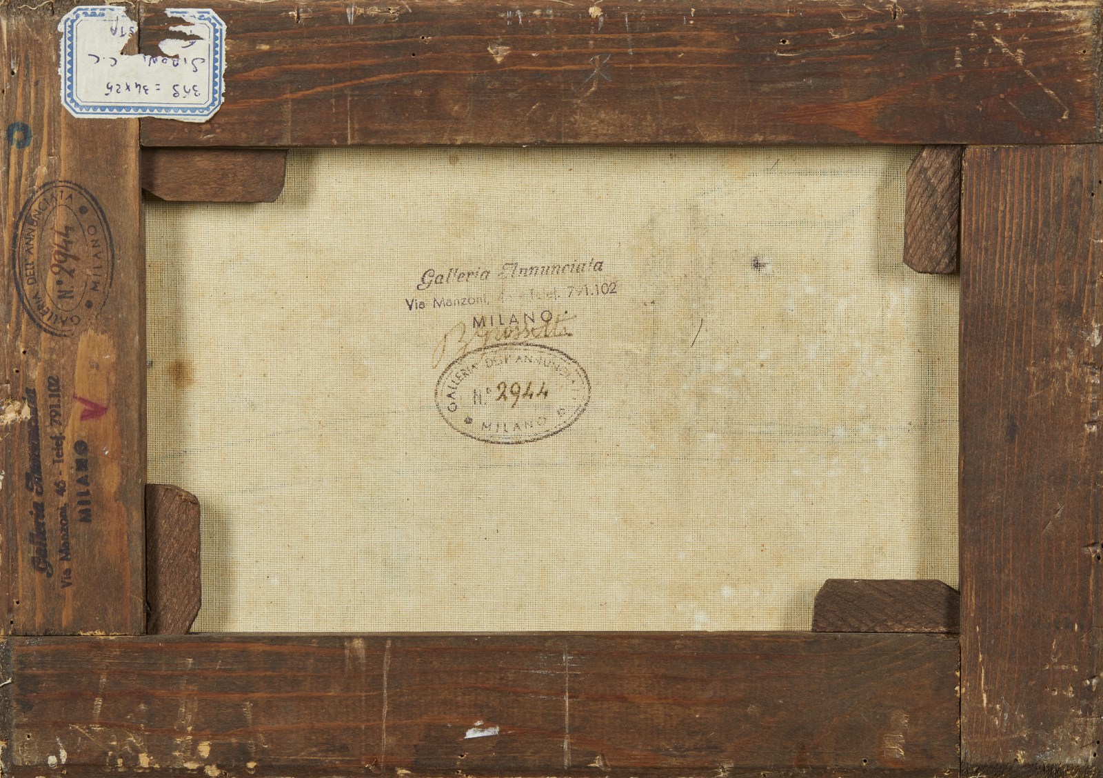 Firma apocrifa in basso a destra. Autentica su fotografia di Francesco Meloni. Opera archiviata presso l'Associazione per il Patrocinio e Promozione della figura e dell'opera di Mario Sironi, Milano, come da documentazione allegata all'opera riportante il relativo numero d'inventario. Difetti.