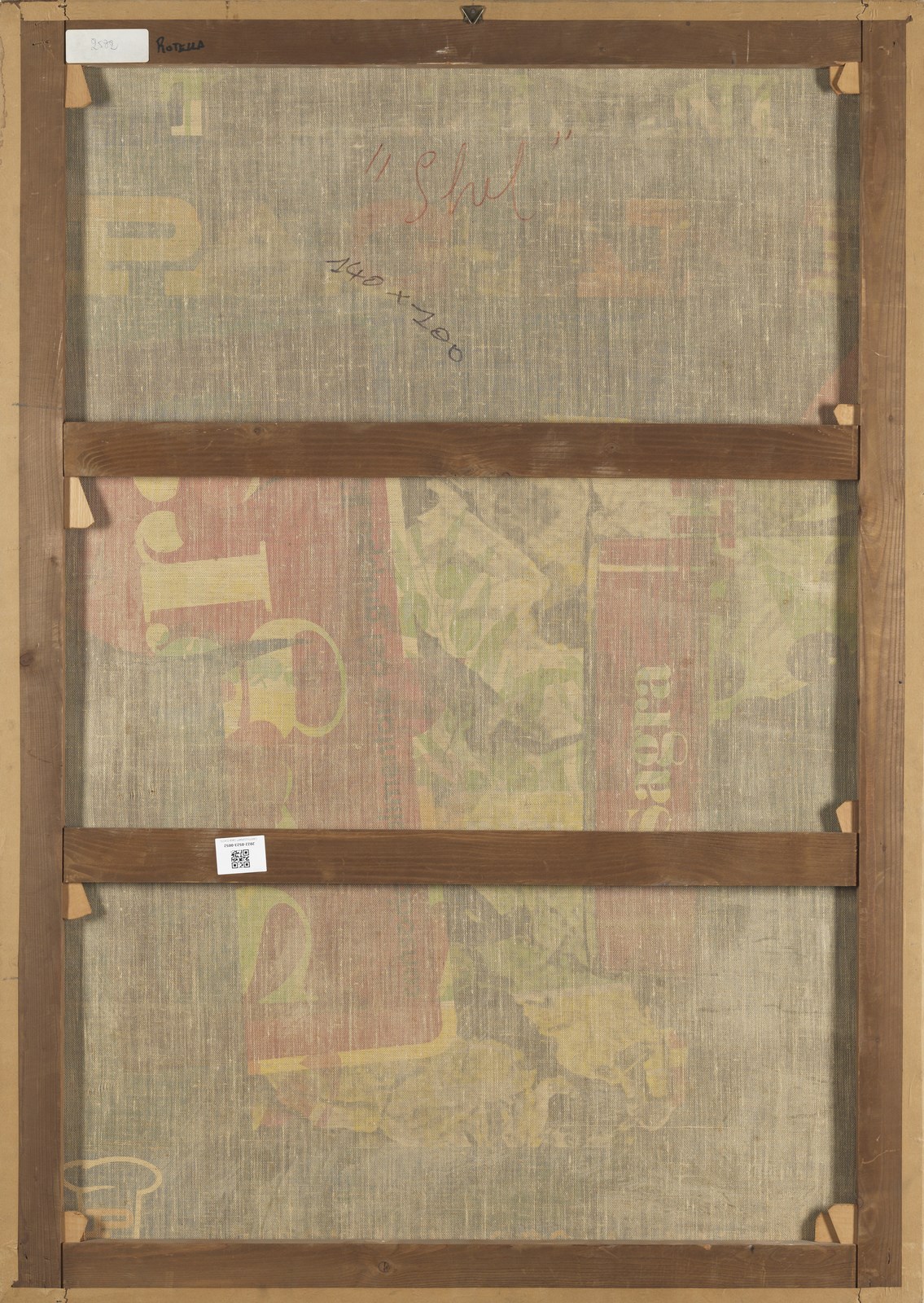 Firma e anno in basso a sinistra. Pubblicazione: Rotella Le Favolose trasformazioni a cura di Maurizio Fagiolo e Ennery Taramelli, Roma, 1977, p.18- Rotella a cura di Tommaso Trini, Prearo Editore- Rotella - Artypo a cura di Alberto Fiz, Umberto Allemandi Editore. Provenienza: Collezione Prearo, Milano- Collezione privata, Roma. Difetti.
