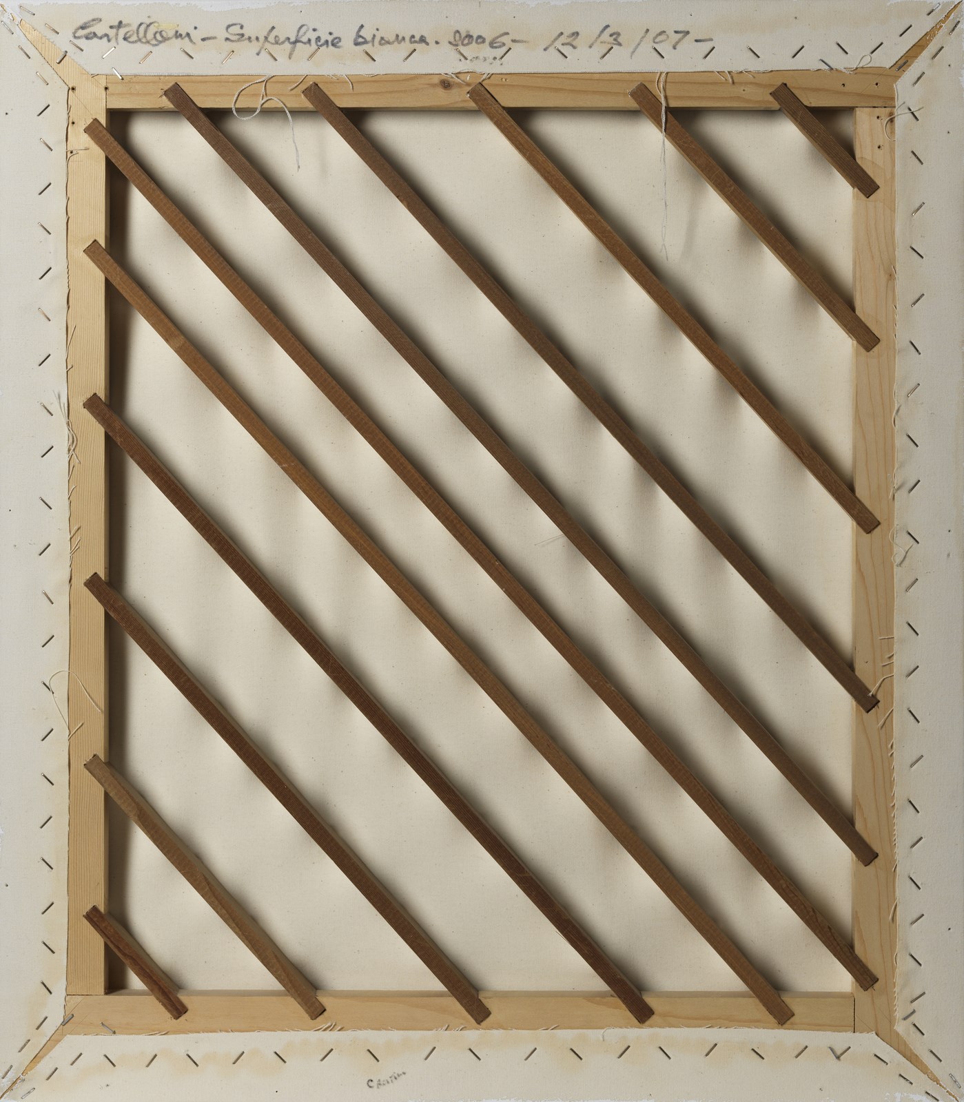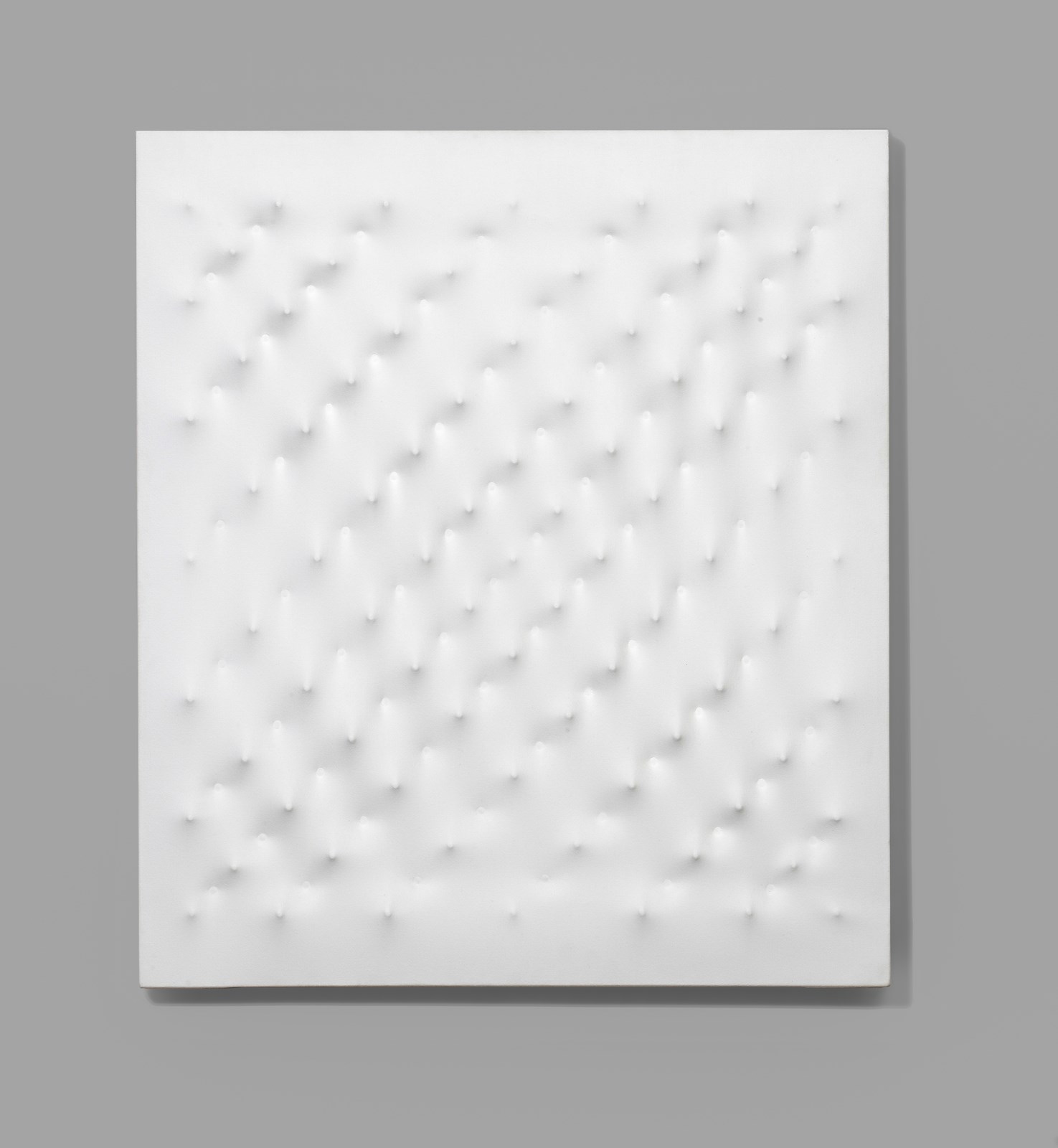 Al retro titolo, firma e anno. Opera archiviata presso l'Archivio Enrico Castellani, Milano, come da documentazione fotografica allegata all'opera riportante il relativo numero d'inventario. Provenienza: Collezione privata, Roma- Collezione privata, Bergamo.
