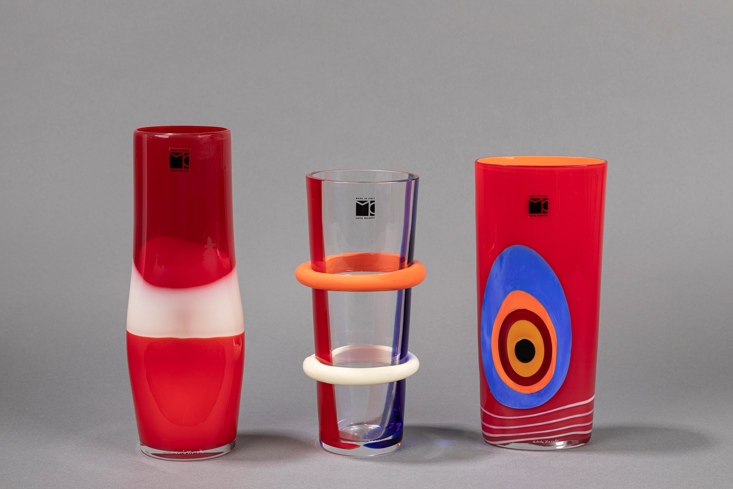 1980 ca. composta da tre vasi in vetro soffiato di diversi colori.