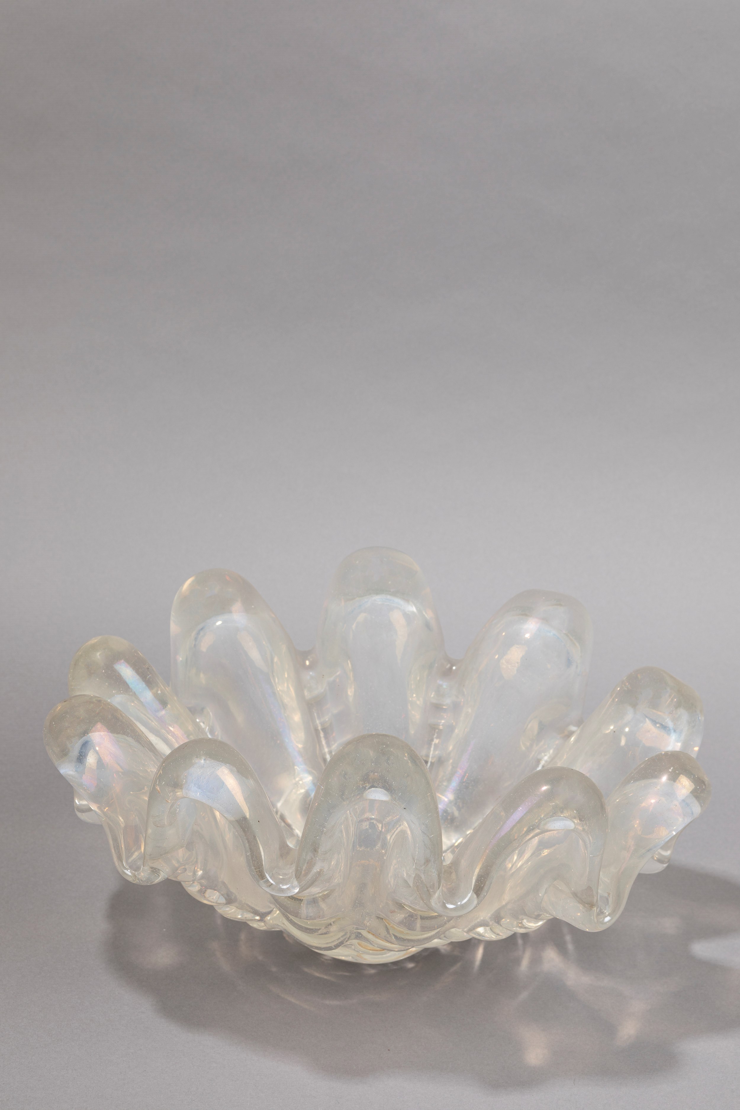 Centrotavola in vetro iridescente di grosso spessore. Produzione Barovier e Toso.