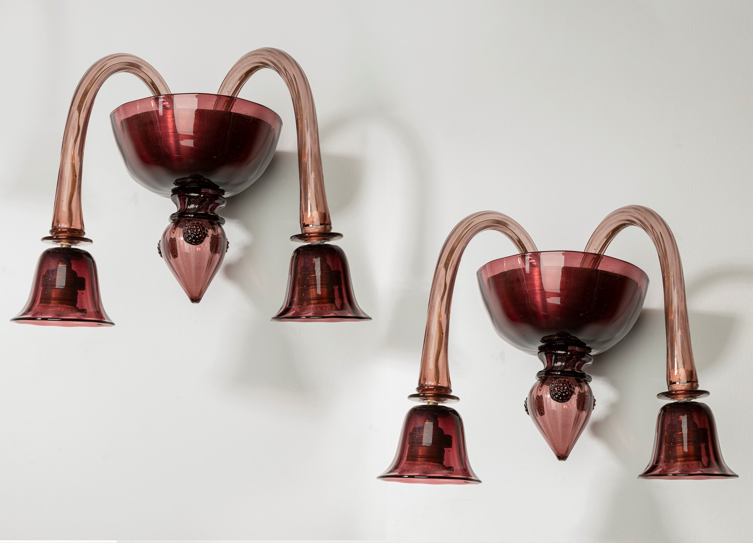 a due bracci in vetro soffiato di Murano. Produzione Venini.