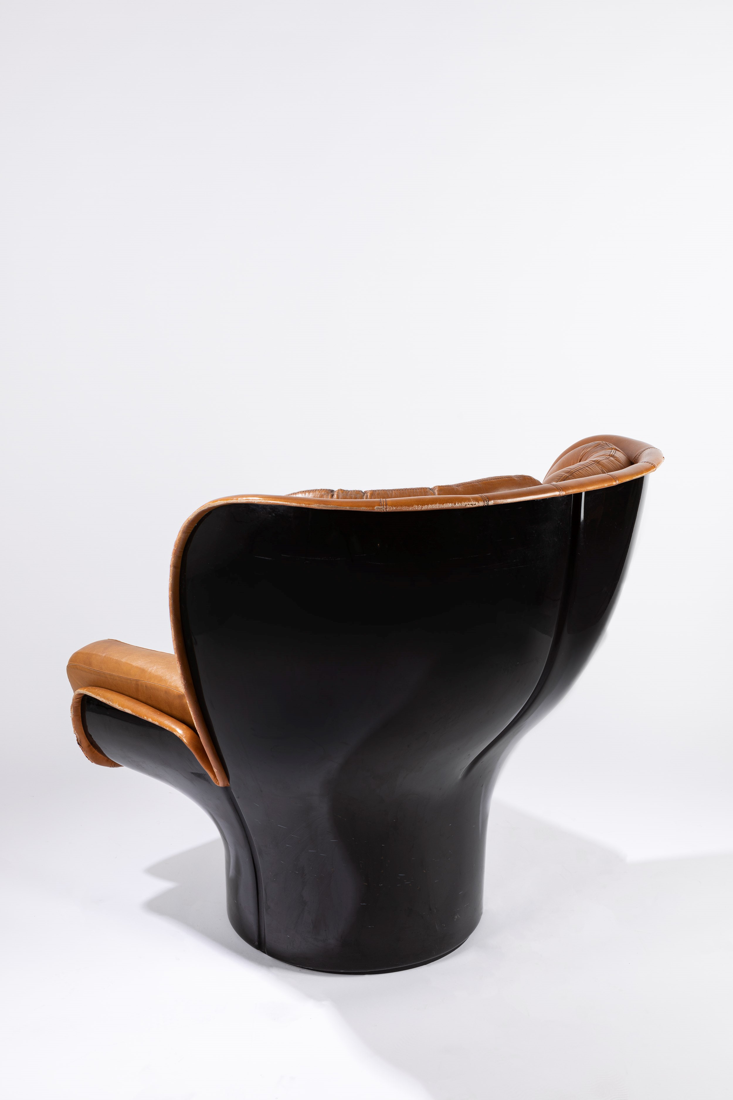 Poltrona girevole in Vetroresina, imbottitura rivestita in pelle. Produzione Comfort.