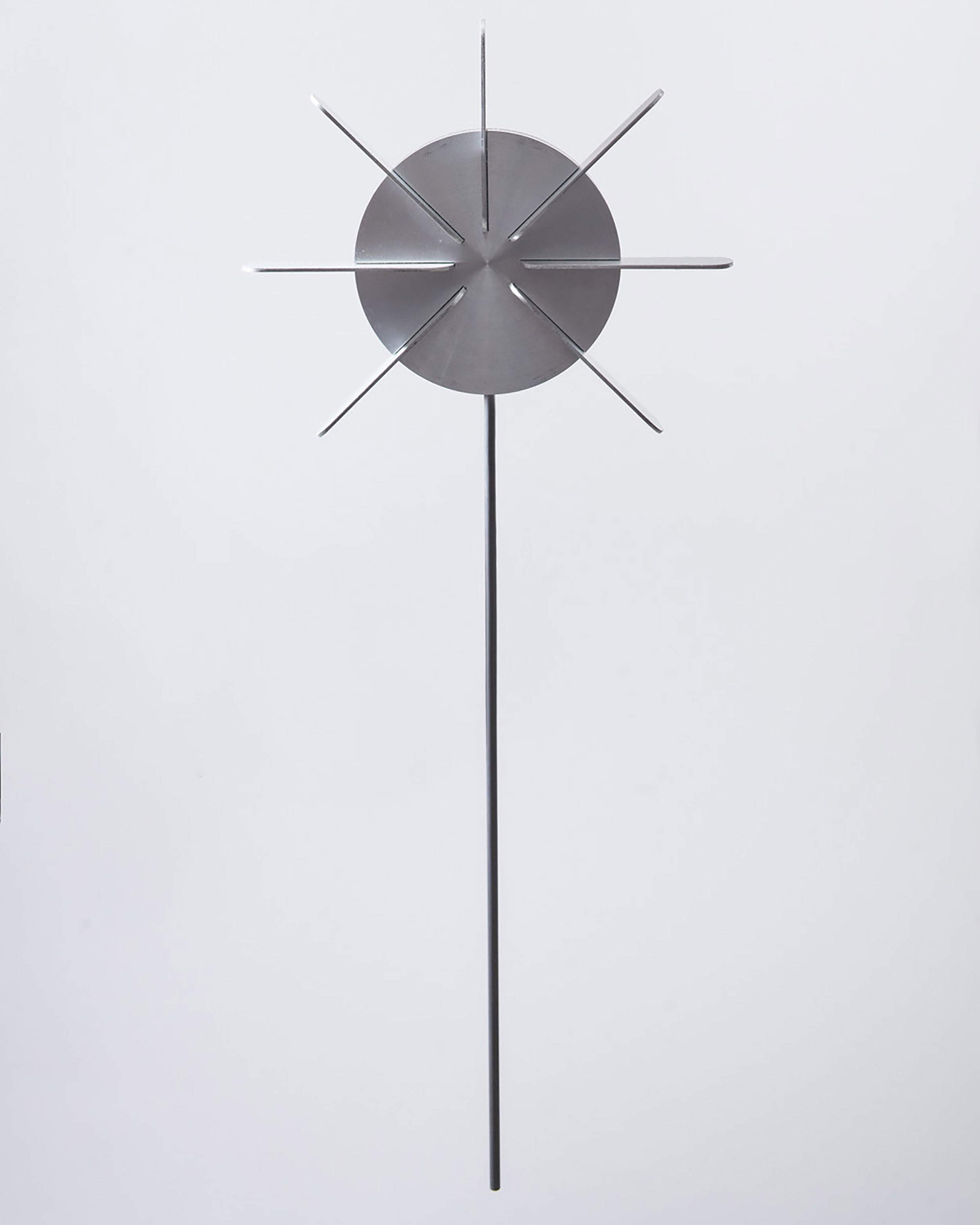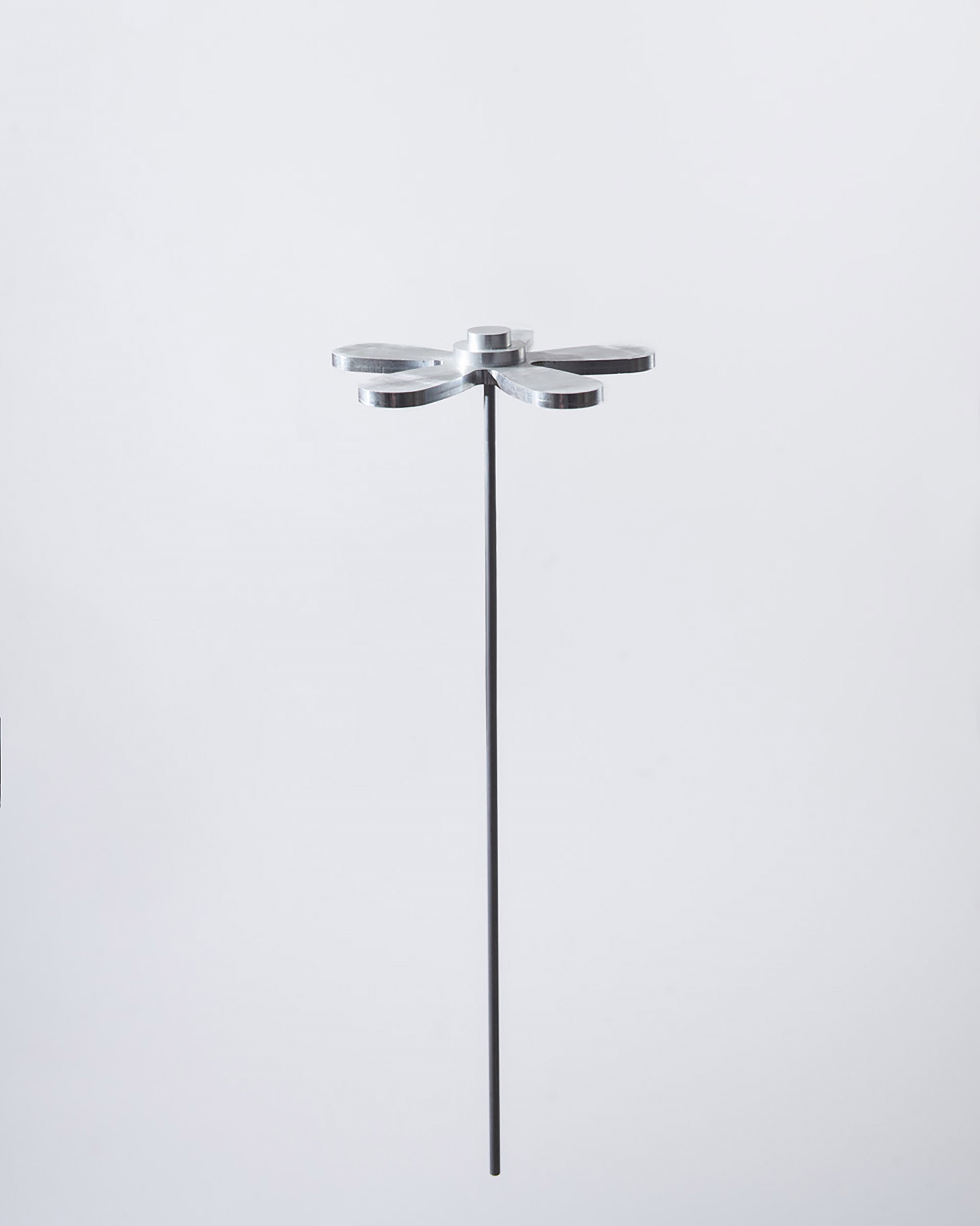 Nove fiori in alluminio e acciaio. Produzione Alchimia. Edizione limitata a 9 esemplari a modello. Da un progetto realizzato in collaborazione con la Fondazione Sacra Famiglia di Milano, esposto presso la Pinacoteca Brera.