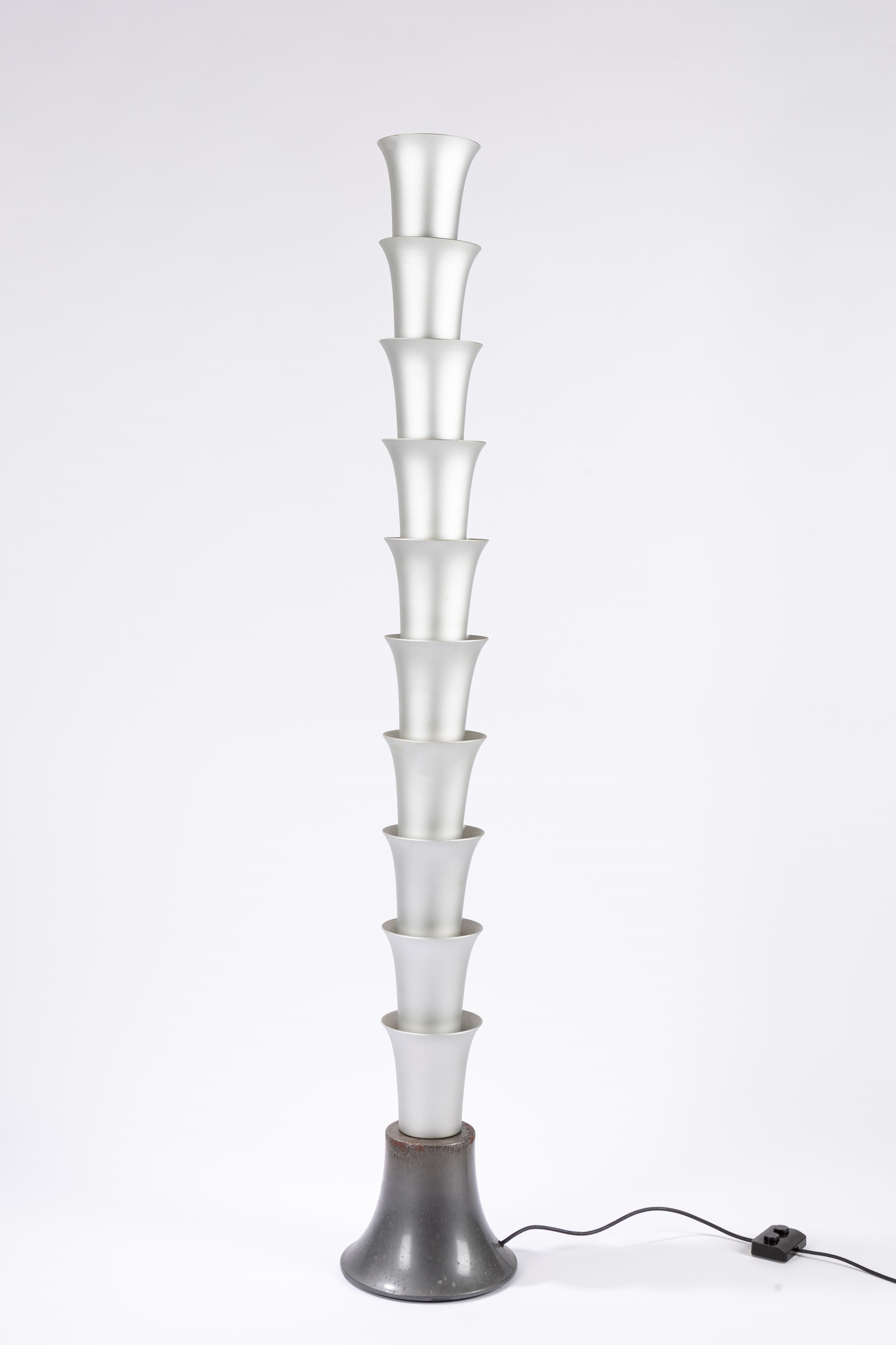 1989 Lampada da terra in metallo. Riflettore in alluminio. Produzione Tronconi.