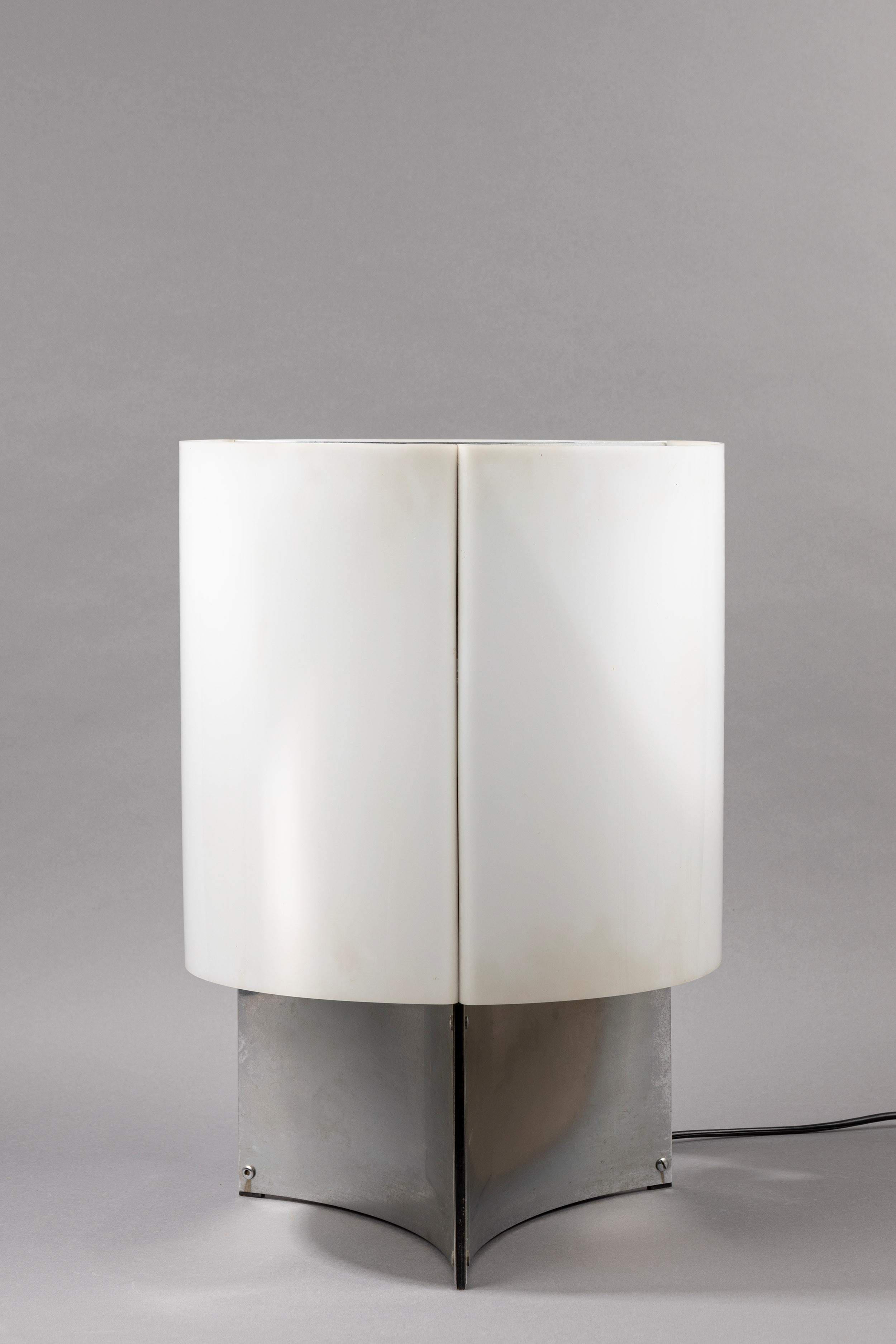 con base in metallo cromato e diffusore in persperx. Produzione Arteluce.